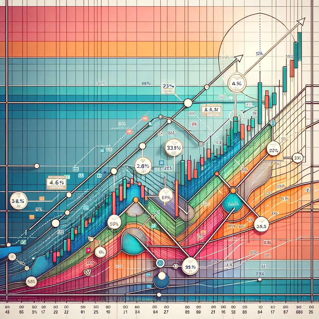 피보나치 수열에서 나오는 비율, 특히 0.618(또는 61.8%), 0.382(38.2%), 0.236(23.6%)은 자연, 예술, 건축물 등 다양한 분야에서 발견될 수 있으며, 금융 시장에서도 중요한 역할을 합니다. 피보나치 리트레이스먼트(Fibonacci Retracement)는 이러한 비율을 사용하여 시장의 잠재적인 지지 및 저항 수준을 예측하는 데 사용됩니다.